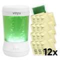 Vayu air purifier reduces CO2 levels by up to 70% in minutes and removes PM2.5, formaldehyde, and TVOC. It is designed to filter out particulate matter and certain gases.